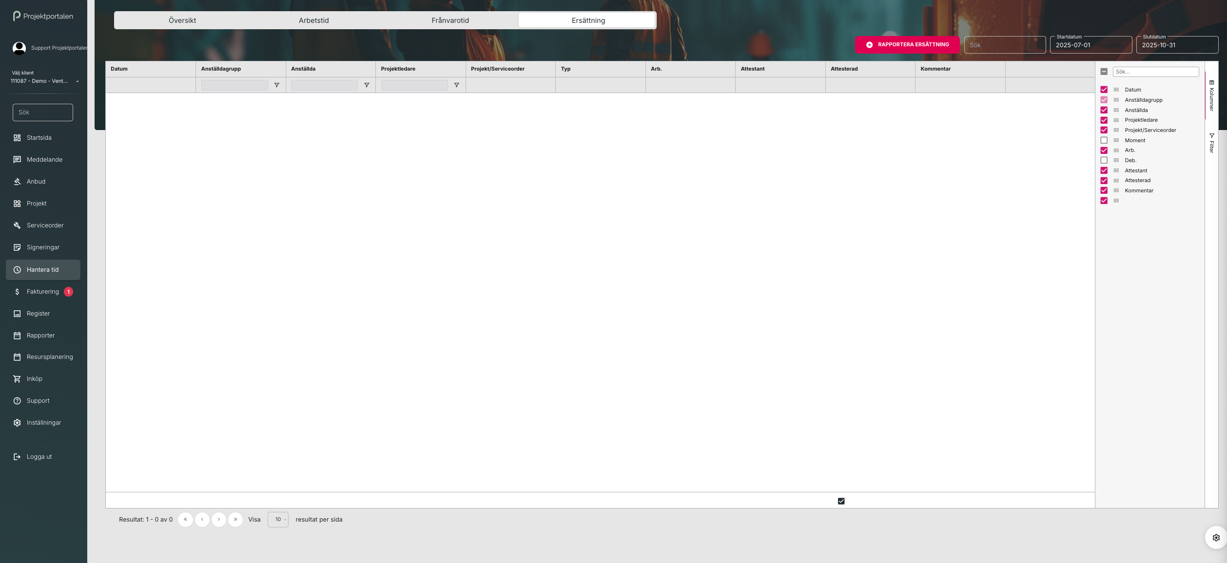 c. För att rapportera ersättning klicka på Ersättning och Rapportera ersättning: