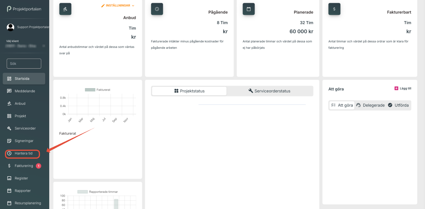 1. Välj alternativet Hantera tid i i huvudmenyn